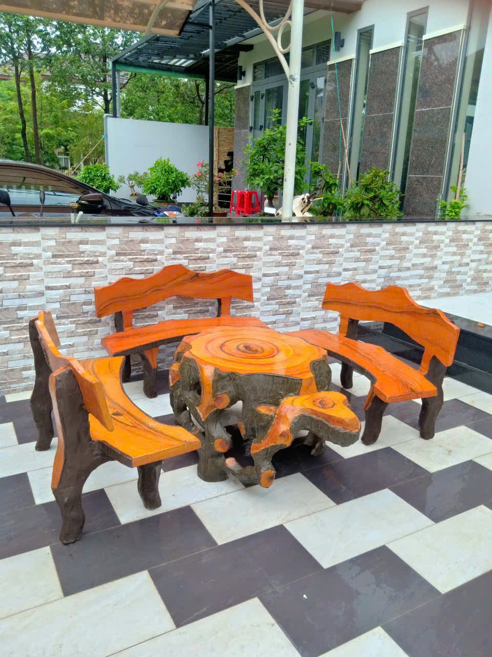 Bộ bàn ghế đá giả gỗ Đại Long D1